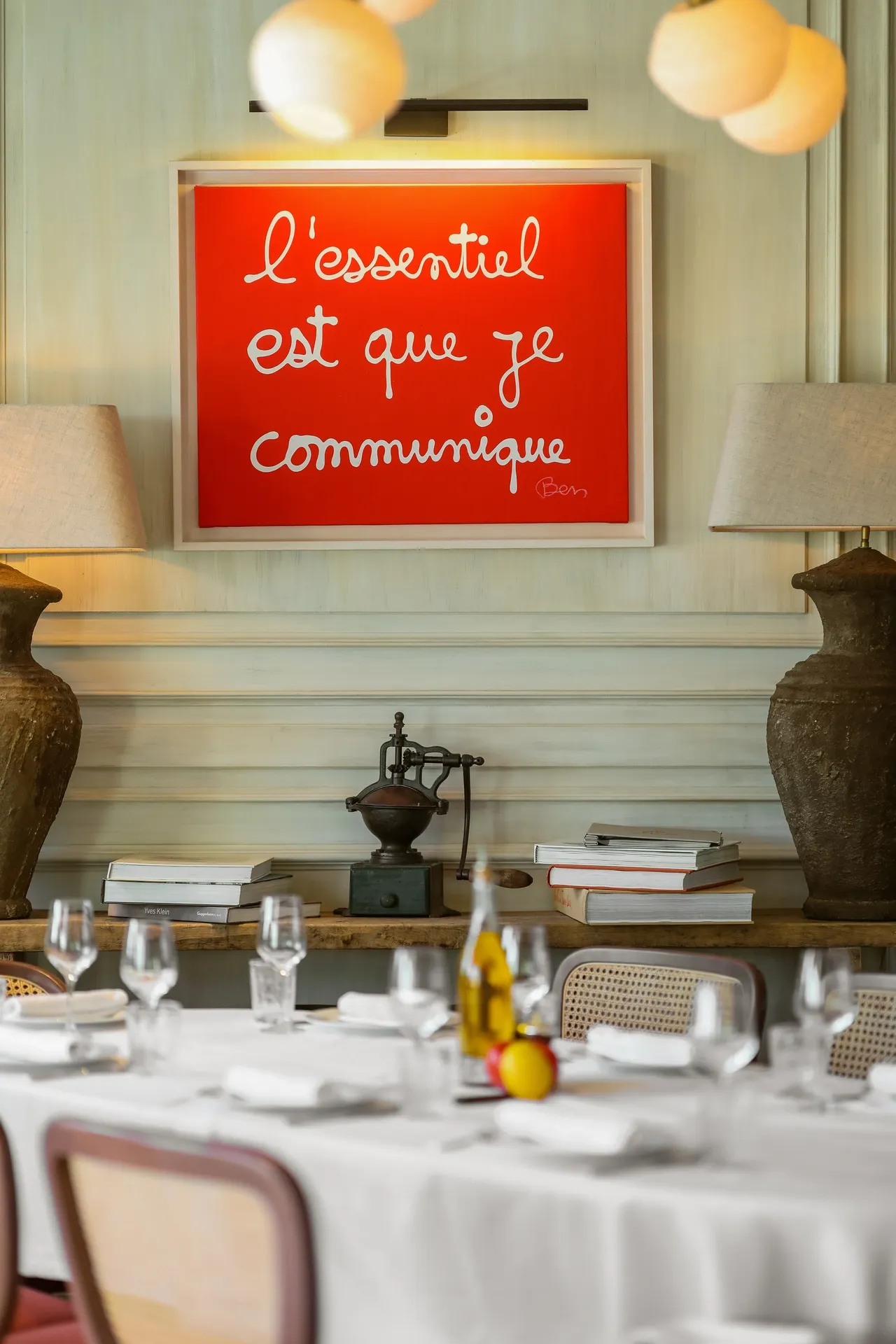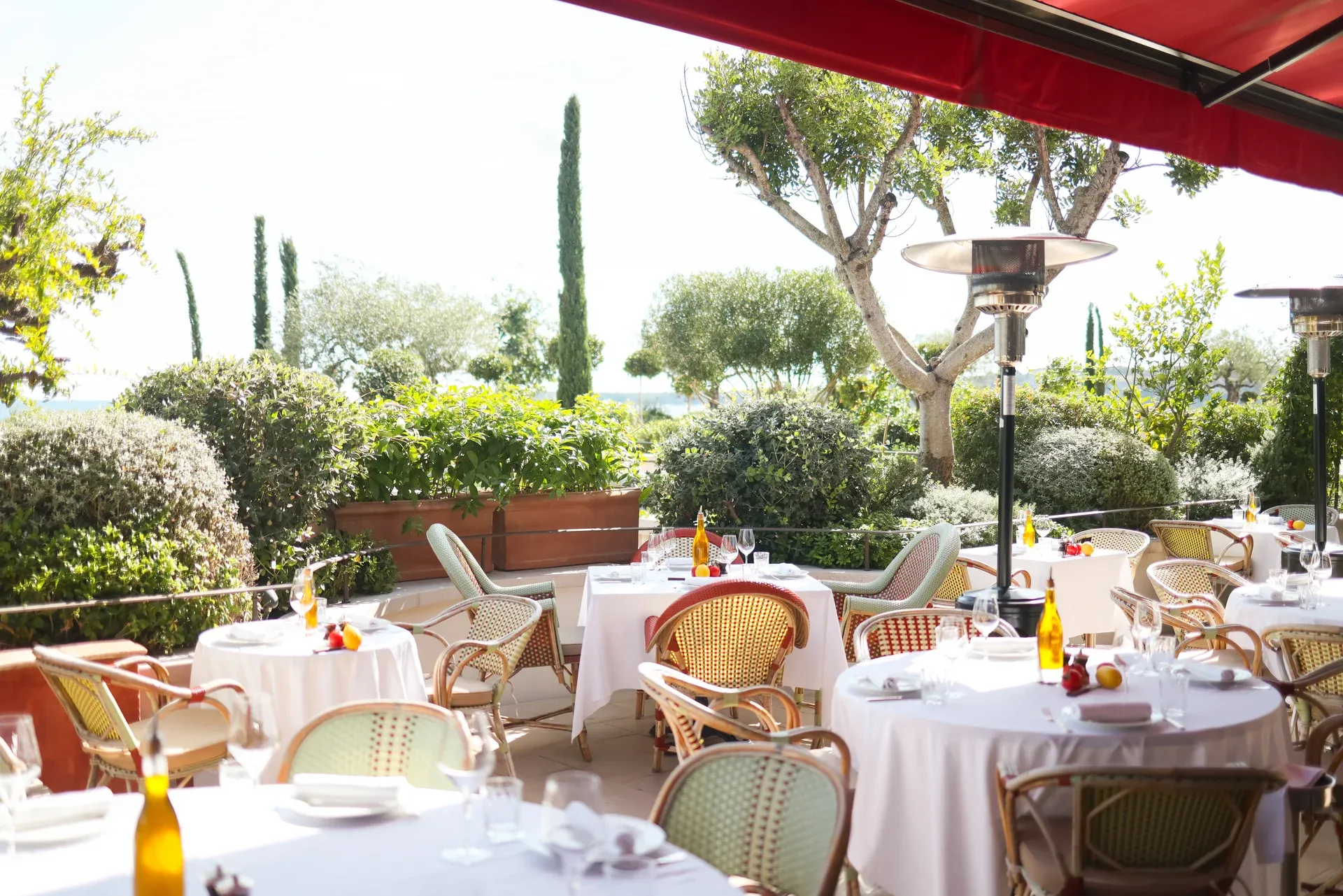 Crafted by the architectural firm Caprini & Pellerin, the design exudes elegance with meticulous attention to detail. From the vibrant jars of peppers and citrus fruits adorning the salad bar, to the ochre mosaic gracing the entrance and the artworks from the École d’art de Nice adorning the walls, every element is in the spirit of an authentic Provencal home. The restaurant opens onto a magnificent terrace bathed in sunlight, with typical regional flora taking center stage amidst a backdrop of the Mediterranean Sea.